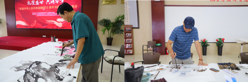 活動現場洋溢著濃郁的喜慶氣氛,藝術家們懷著強烈的責任感,即興揮毫潑墨,創作了巨幅國畫《羅漢伏虎》、《秋色秋聲》、《盛世華章》和《江山多嬌》等近三十幅作品,有國畫有書法,有的展現了祖國的壯麗山河,有的描繪了人民的幸福生活,有的反映了時代的偉大變遷,充分展示了書畫藝術家高超的藝術技能及深厚文化底蘊,體現了書畫藝術家們不忘初心、勇于當擔、甘于奉獻的精神,一幅幅精美的畫作抒發了對祖國母親的熱愛和祝福,它們不僅是藝術家們才華的展示,更是我們對祖國深深眷戀和美好憧憬的真情流露。現場不時爆發熱烈掌聲,贏得在場觀眾喝彩。